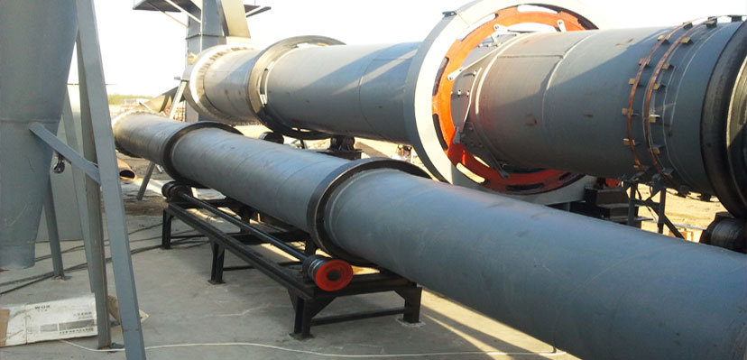 汙泥由給料機經溜槽進入烘幹機內導料板上,隨著筒體的轉動,汙泥被導至傾斜揚(yáng)料板上即被提升到筒體的(de)中心位置,逐漸灑(sǎ)落(luò)形成料(liào)幕,高溫氣流從中穿過,使汙(wū)泥預熱並蒸(zhēng)發(fā)部分水(shuǐ)分。當(dāng)汙泥灑落、移動到活動的篦條式翼板上時,物料又與預熱過的篦條式翼板夾雜在一起,將熱量傳給物料,使部分水(shuǐ)分蒸發。同時,翼板夾帶物料提起、灑落,重(chóng)複多次,物料與熱氣流(liú)進行對流和接觸熱(rè)交換。同時埋(mái)在(zài)物料中的清掃裝置,也沿(yán)圓弧形揚料(liào)板的裏側下滑,把揚料板內壁粘(zhān)附的物料(liào)清掃下來。當清掃裝置(zhì)隨筒體(tǐ)轉過垂直線以後,又在(zài)圓弧揚料板背麵拖動,將其粘附(fù)在揚料板外壁的物料(liào)清掃下來。隨著筒體的不斷轉動,使部分水分蒸發,汙泥得到進一步幹(gàn)燥。同時,清掃裝置對汙(wū)泥團球也起到了打碎作用,提高了幹燥(zào)速度,較後汙泥幹燥後變成低水分的鬆散物料,由出料(liào)口排出。