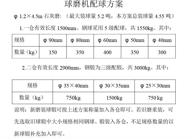 球磨機鋼球的配比方法及公式、相關知識